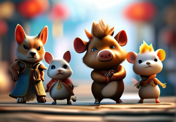《生肖传奇》以“生肖守护灵”的设定为核心,讲述了各生肖动物化身江湖侠士,共同守护人间平安的故事。不同于传统生肖叙事的静态传说,此次动漫将十二生肖赋予现代侠义精神,让鼠、牛、虎等角色在“闯江湖”中展现个性与协作。动画制作方透露,团队在创作过程中参考了多地民间传说与文物考据,力求在视觉与叙事上还原传统文化的精髓。例如,牛生肖在设计上融入青铜器纹样,兔生肖的轻功灵感则源自敦煌壁画中的飞天形象。